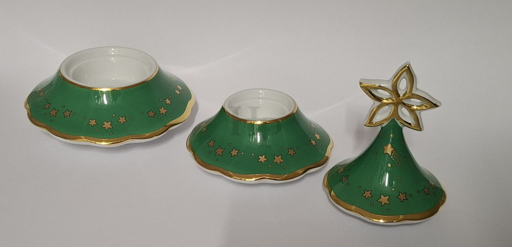 Hollóházi 3 részes karácsonyfa gyertyatartó 9289 Zöld (17cm)